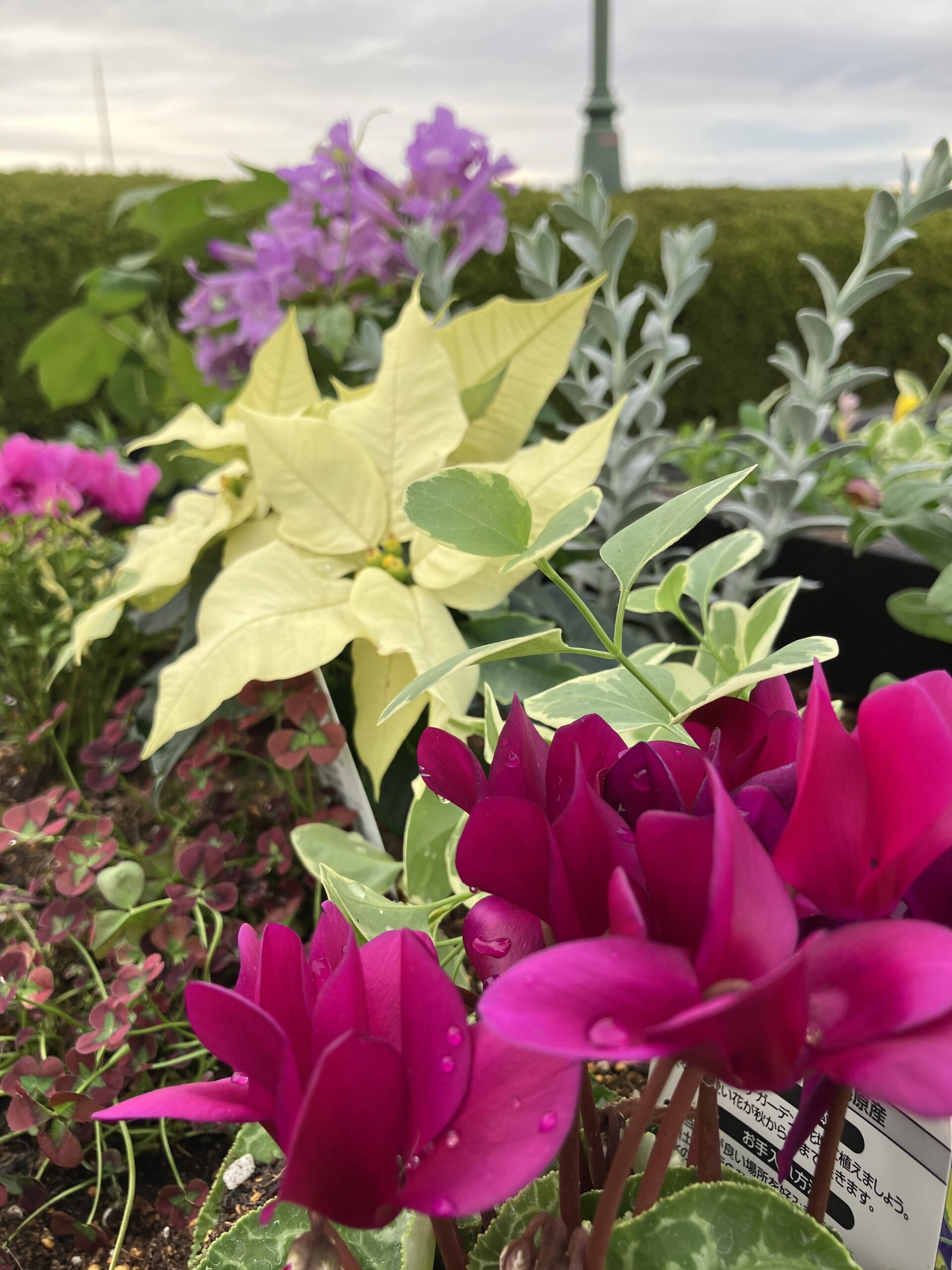 フィレンツェライフ青山では2025年11月4日に屋上庭園でお花を植えました。 くもりがちな空でしたが、風もなくガーデニングにはもっていこいの天気、たくさんのご入居者が参加してくださいました。 車椅子で久しぶりに屋上に出向かれた最高齢のご入居者も、やさしくお花を扱いながら植えてくださいました。 花壇にもたくさんのパンジー、ビオラ、そして珍しい色合いのクローバーをバランスよく配置します。 春に植えたお花も大きく成長しました。その下にお花を植えていただきます。みなさん夢中になって作業してくださいました。 ポインセチアとシクラメンの季節です。色鮮やかな花々がご入居者の目をこれからしばらく楽しませてくれることでしょう。