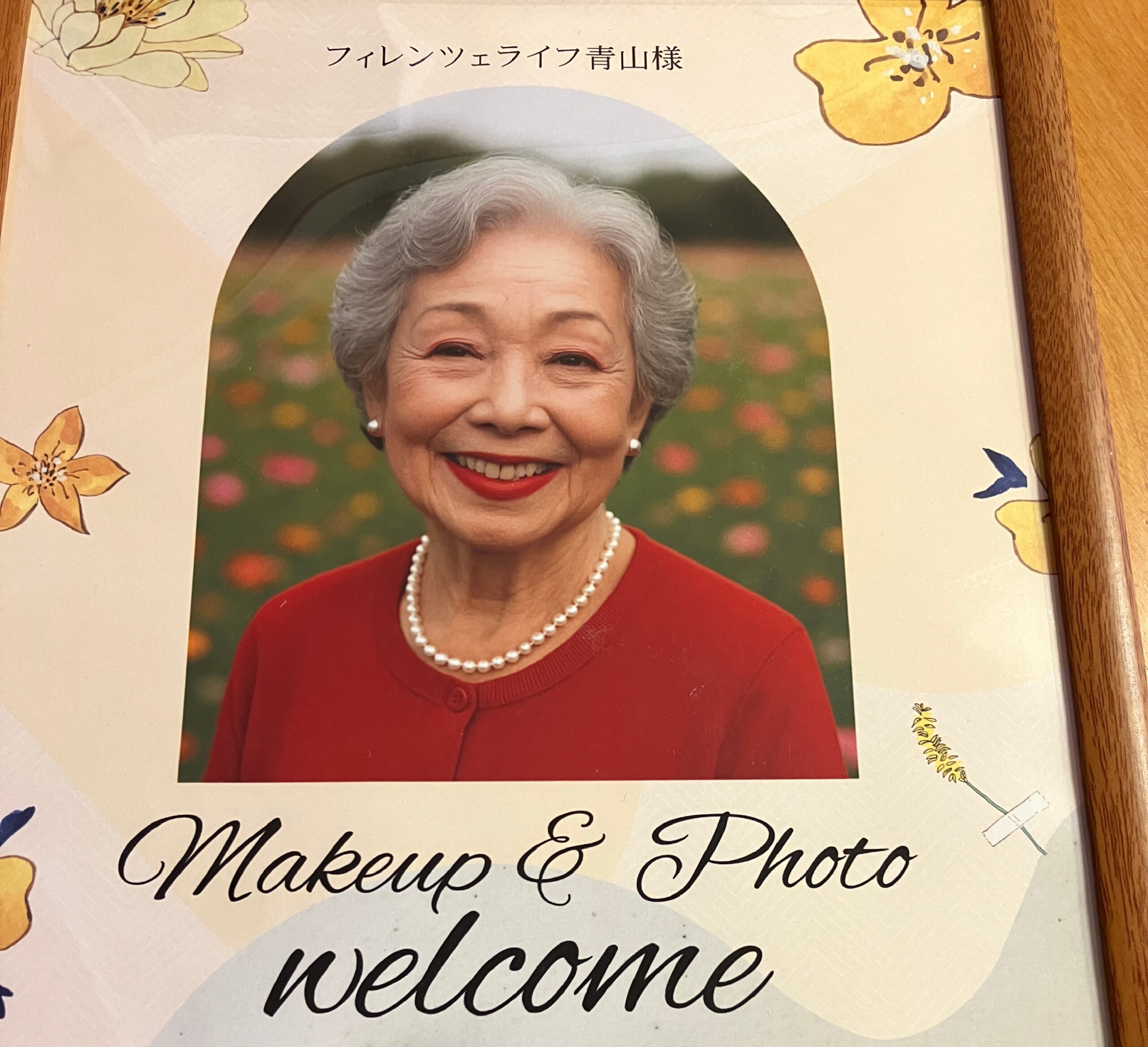 フィレンツェライフ青山では2025年11月25日(木)介護美容の施術者をお招きしメイクと写真撮影のレクリエーションを開催しました。 肌色を確認しながら、パウダーをはたいていきます。「きめの細かい肌をしていますね」とご入居者にやさしく語りかけながら、です。 カラフルなパレット、「どの色がお好みですか?」アイシャドーや口紅の色をご自身で選ばれる方もいれば、「おまかせするわ」とおっしゃる方も。たくさんの色があるので迷われます。 メイクの間も髪を巻いてセットしていただきます。ふんわり髪をしておくと若々しくなりますものね。 背景にきれいな布を設置し、光を反射させてお顔を明るくするレフ版をセットして写真撮影。みなさん肌色も明るく、アイシャドーや口紅で華やかになって、表情もイキイキされていました。「きれいですね」と職員からたくさん声がかかり、笑顔もたくさん見られたレクリエーションの時間でした。