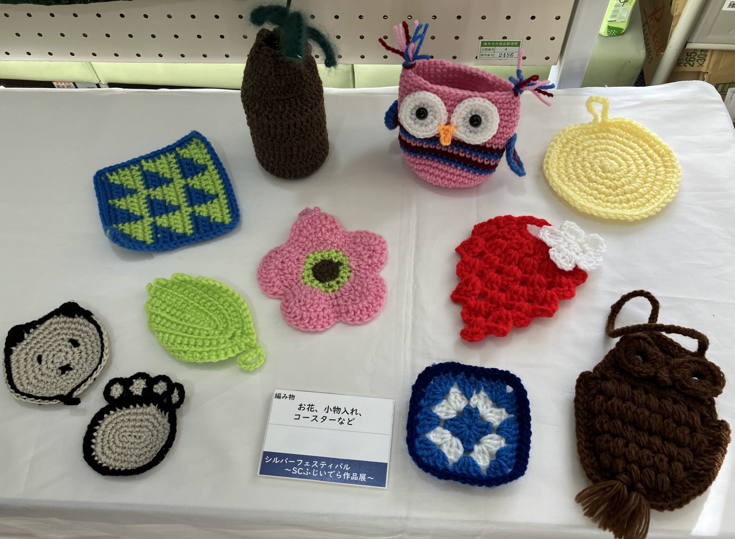 フィレンツェライフ青山のご入居者が2025年11月29日(土)に藤井寺市老人クラブ連合会が主催するシルバーフェスティバルに作品を出品されました。 この催しは世代間交流を通じて高齢者の健康・生きがいづくり、社会参加をすすめ、明るい長寿社会を目指すことを目的に開催されました。ご入居者が作成した手編みのコースターや小物です。 先日、当ホームのレクリエーション、手編みの会にて作成されたコースターなど。ピンクと赤の色合いが形にマッチしてかわいらしいですね。 作品と一緒にハイチーズ。ご入居者は他の出品者の方々とも作品にまつわるお話をされ、楽しくすごしていらっしゃいました。 市民総合会館の中ホールでは、坂東与志常会による日本舞踊や 新年には当ホームでもお世話になっている野中太鼓保存会による演奏や舞も披露され、出品されたご入居者も見学されました。 獅子舞が舞台から降りてきて座席をまわり、ご入居者の頭をカブリ!いいことがありますように。作品と共に藤井寺で活躍されている団体の発表をくつろいで、興味深くご覧になっていました。