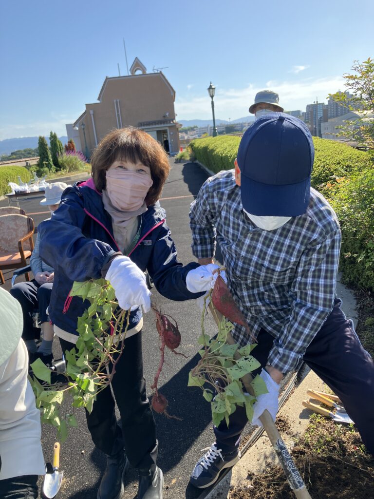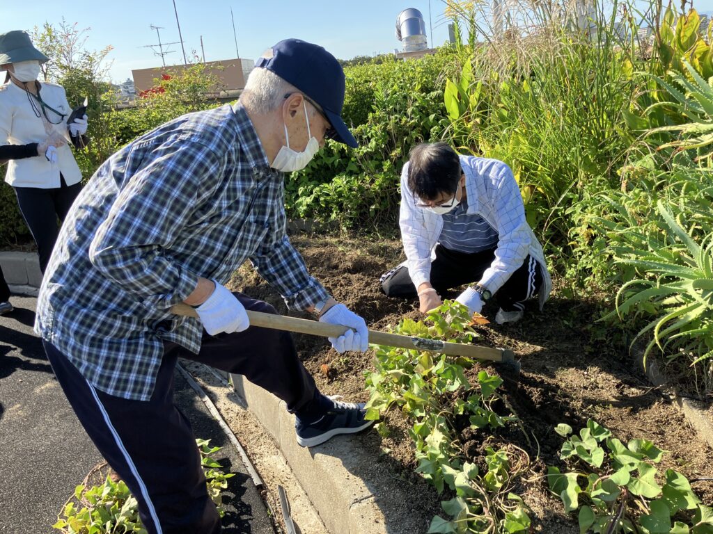 フィレンツェライフ青山では2025年10月17日(金)に屋上庭園でお芋掘りをしました。