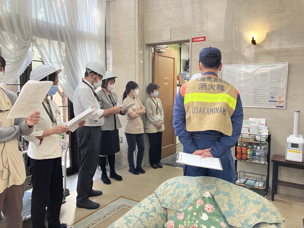 年2回開催する定例の消防訓練で、大阪南消防局の指導のもと実施しています。