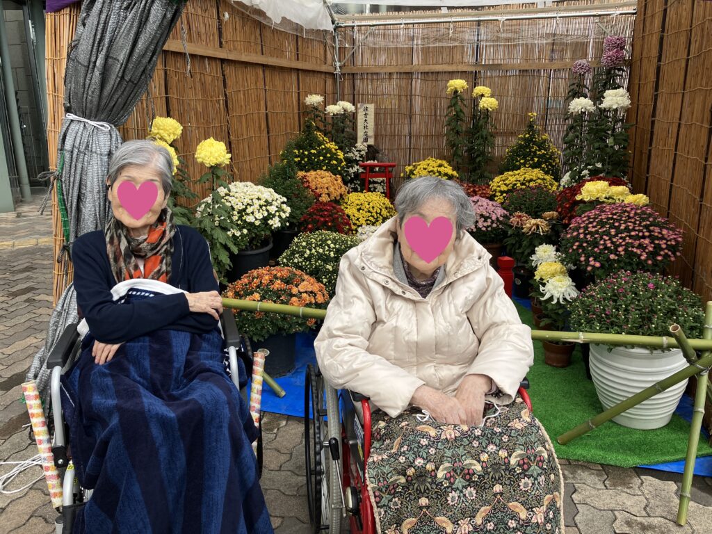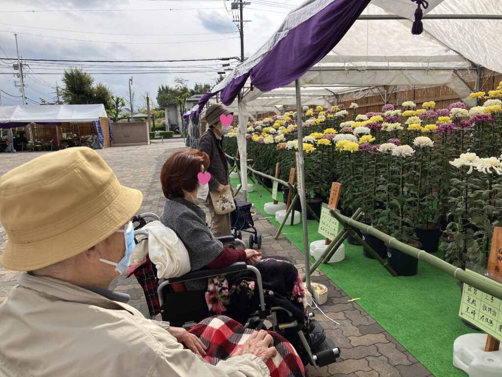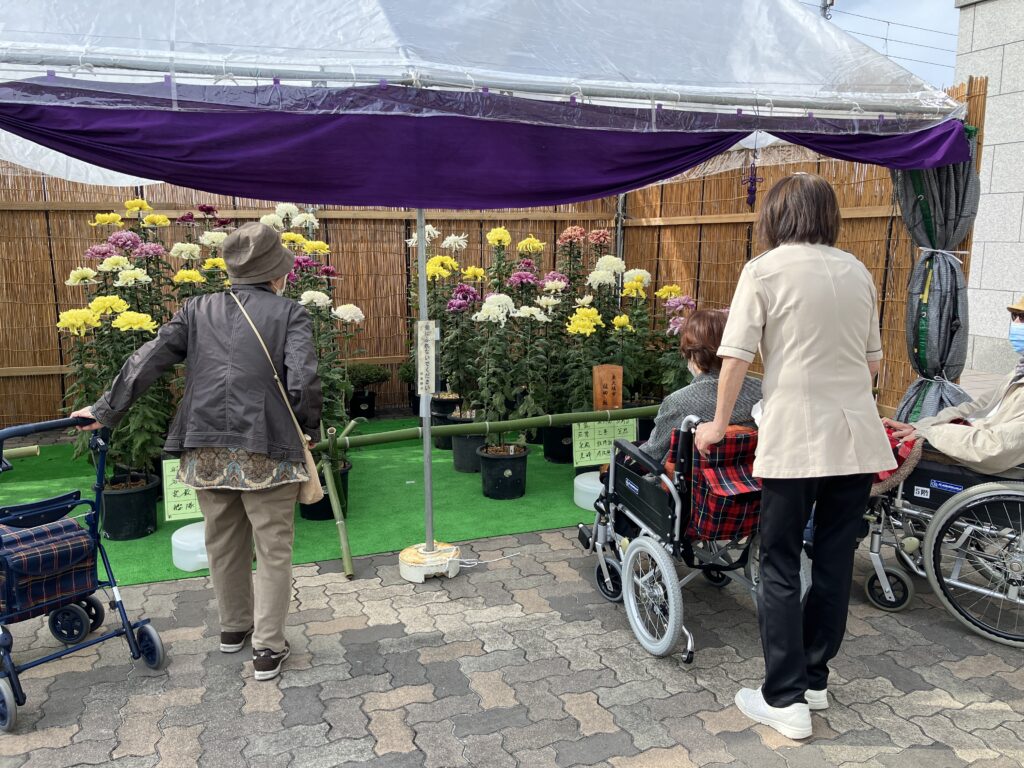 ずらりと立ち並んだ菊たち。ご入居者は「日本の花はいいわねぇ」とつぶやかれています。