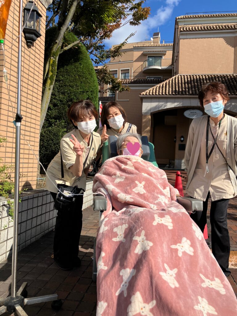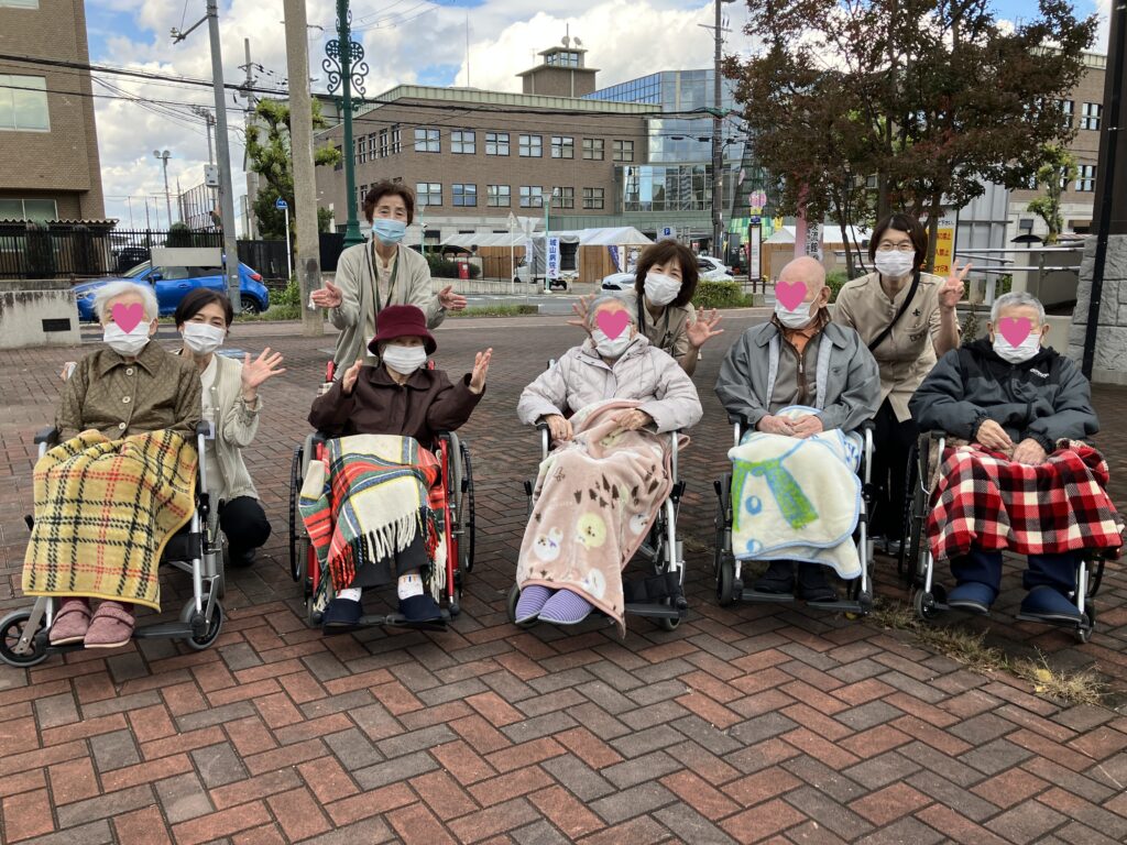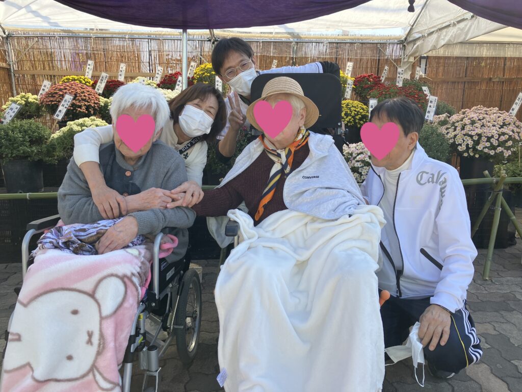 お部屋から外に出向きにくいご入居者にもお声かけして、日向ぼっこ。そして新鮮な空気で深呼吸していただきました。