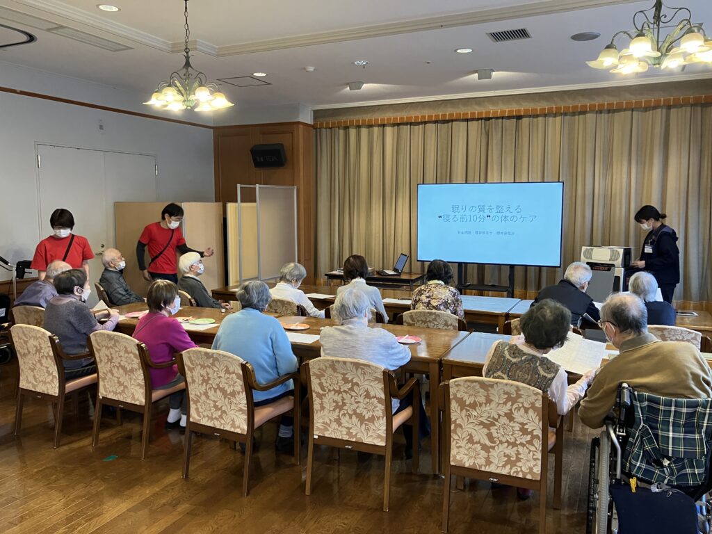 青山病院の理学療法士の先生をお招きし、「眠りの質を整える”眠る前10分”の体のケア」と題し、お話をうかがいました。
