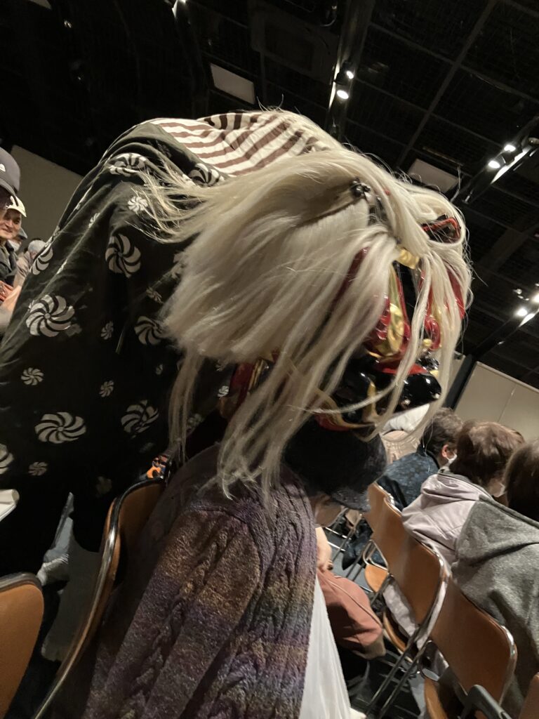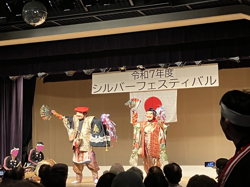 獅子舞が舞台から降りてきて座席をまわり、ご入居者の頭をカブリ!いいことがありますように。作品と共に藤井寺で活躍されている団体の発表をくつろいで、興味深くご覧になっていました。