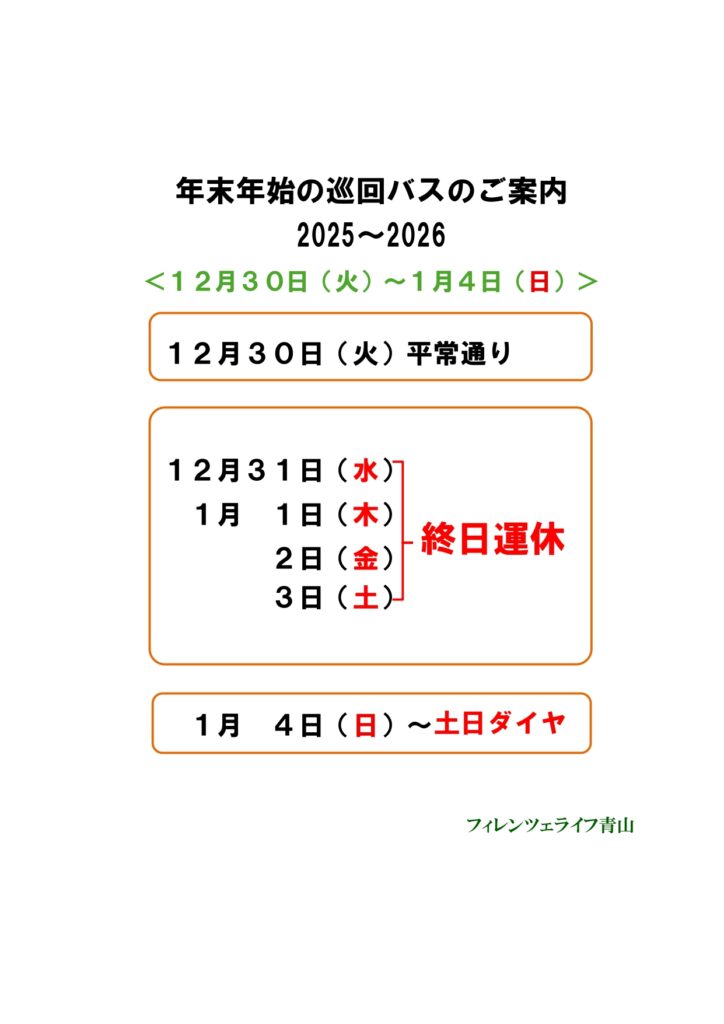 年末年始の巡回バスのご案内
