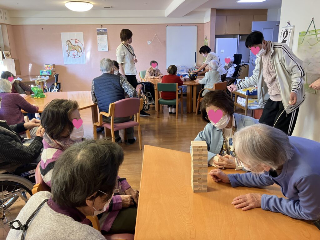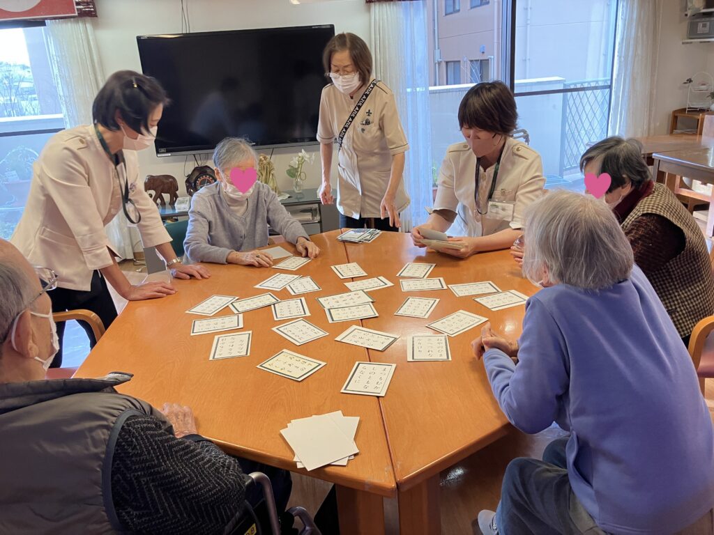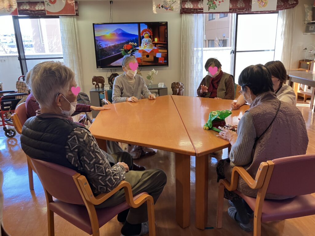 フィレンツェライフ青山では、2025年1月2日に福笑いやかるた、百人一首などテーブルごとに分かれてお正月遊びをしました。