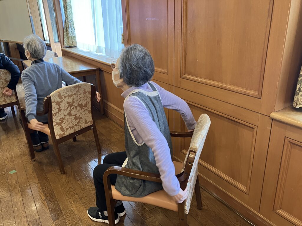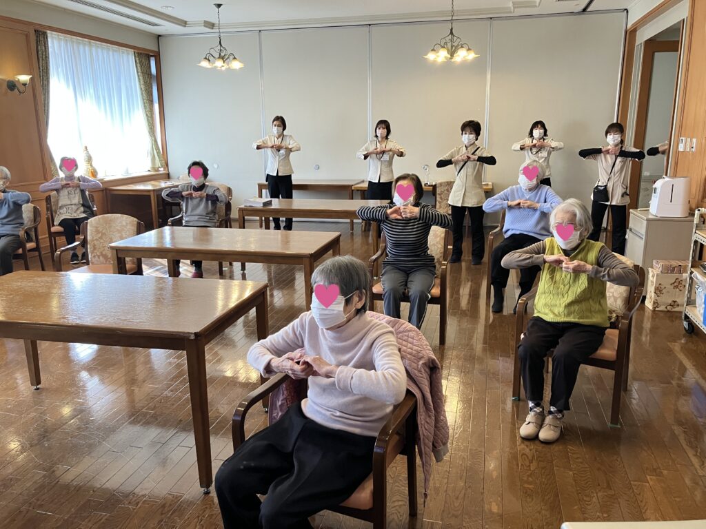 コロナ禍以降、館内の一斉放送にてラジオ体操の音楽を流しご入居者が個別に実施していたラジオ体操でしたが、